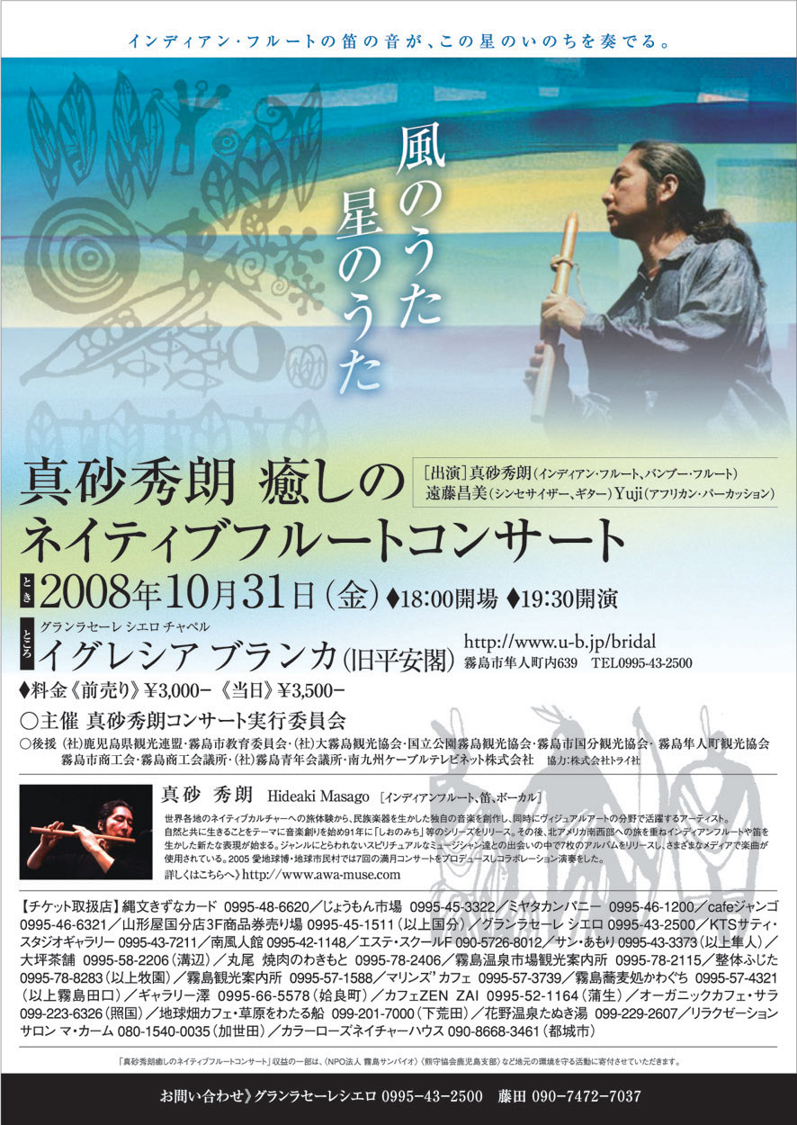 | 10/31(金) | 真砂秀朗ネイティブフルートコンサート「風のうた 星のうた」 | |