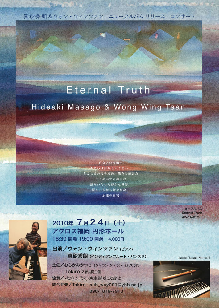 アクロス福岡 円形ホール 真砂秀朗(fl.) ウォン・ウィンツァン(p) 問合わせ/Tokiro 090-1876-7913 sub_way001@ybb.ne.jp |